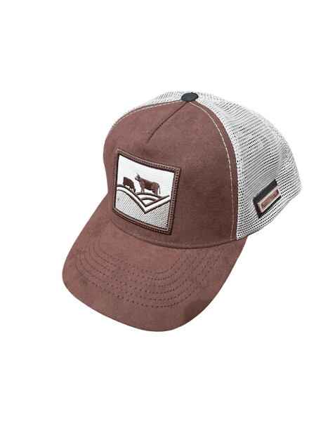Gorra de gamuza café, con placa y bordado de r4pmx